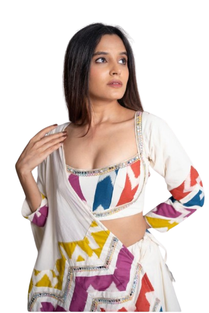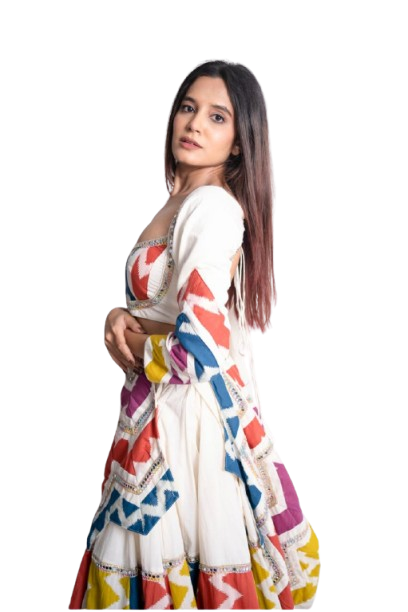White Multicolor Zigzag Patterned Festive Chaniya Choli with Dupatta – Chaniya Choli, Traditional Festive Wear | Cholis.in